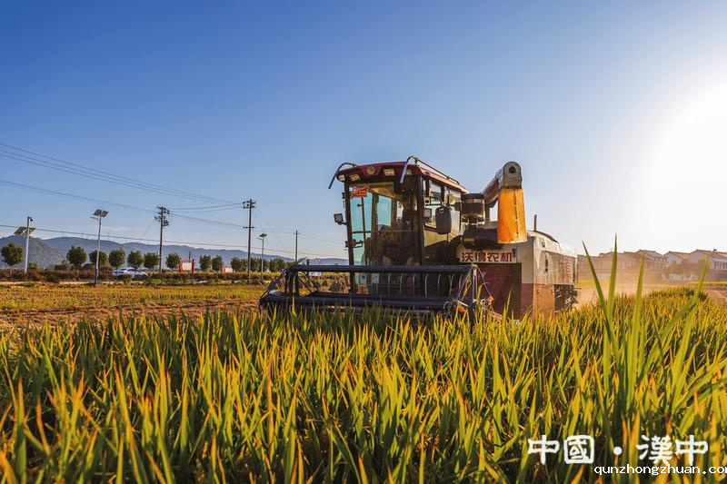 8月27日,在城固县上元观镇李家咀村,连片稻田翻滚着金色波浪,沉甸甸的稻穗压弯了稻秆。联合收割机在田间来回穿梭,轰鸣声中,饱满的稻粒被快速收集,秸秆则被粉碎后均匀还田。